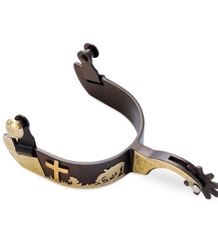 The Horse Spurs Western With Rowel are expertly crafted from sturdy iron plates, featuring a durable nickel plating that enhances resistance to rust and wear. This lightweight design ensures ease of movement while providing effective cues for the horse. The antiqued finish adds visual appeal while contributes to the spurs' longevity, making them suitable for various riding conditions. Designed for both functionality and style, these spurs offer precise control, allowing riders to communicate gently yet effectively. The combination of durable and sustainable materials ensures that these spurs remain a reliable choice for equestrians seeking quality equipment.